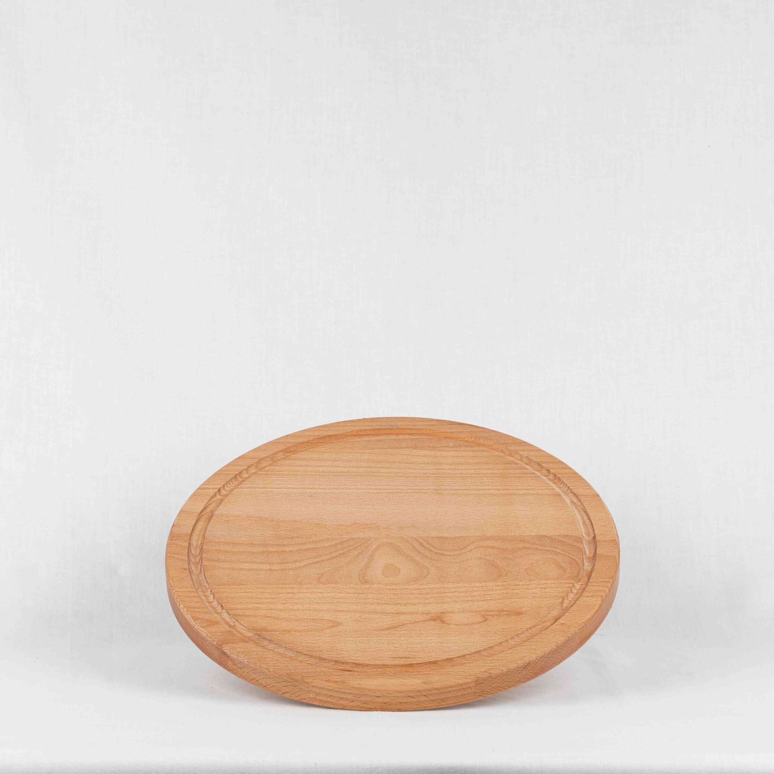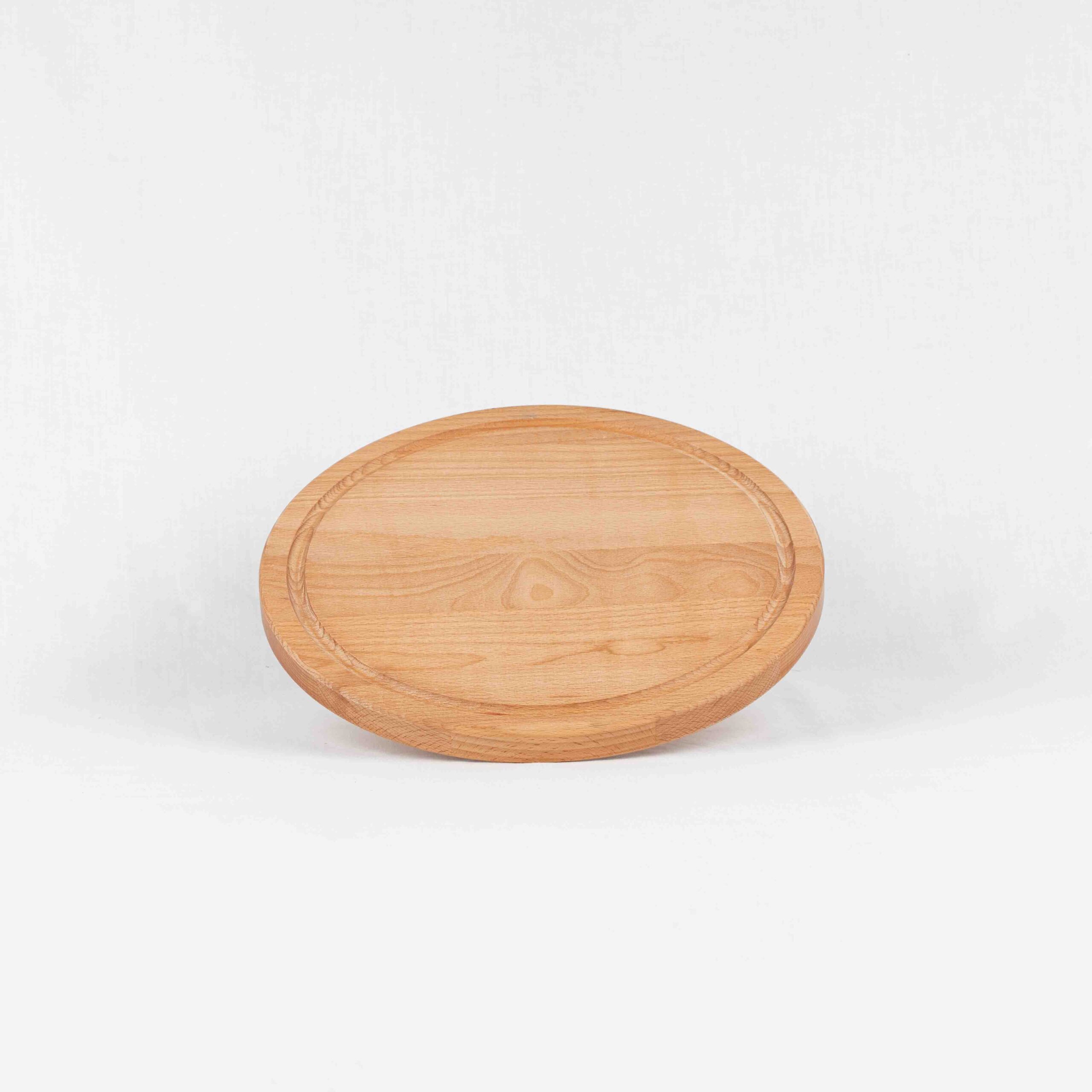 Dieses runde Pizzabrett in Buche ist angepasst an die Größe Pizza. Die Oberfläche ist behandelt mit lebensmittelechtem Chestnutöl. Einseitig ist eine Saftrille eingefräst, was eine flexible Nutzung erleichter.